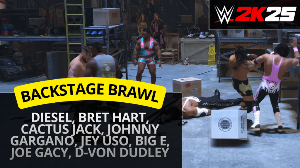 WWE 2K25 – Diesel, Bret Hart, Cactus Jack & Big E (Backstage Brawl)